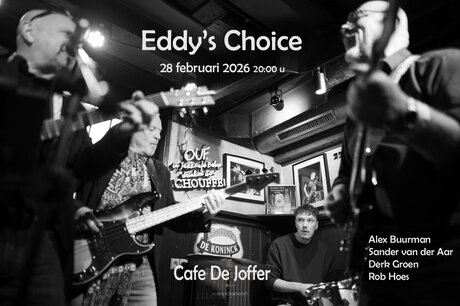 Eddy’s Choice is een nieuwe formatie rond bassist en zanger Eddy de Jong, een muzikant die al decennia lang zijn sporen verdient in de regionale muziekscene. Muziek kreeg hij met de paplepel ingegoten als zoon van de legendarische organist en vibrafonist Eddy Young. Via slagwerk, piano en gitaar vond hij uiteindelijk zijn thuis op de bas, waar zijn warme, doorleefde sound en gevoel voor timing meteen opvallen. Sinds 1980 is hij professioneel actief en staat hij bekend als een veelzijdig muzikant met een groot hart voor het lied.
